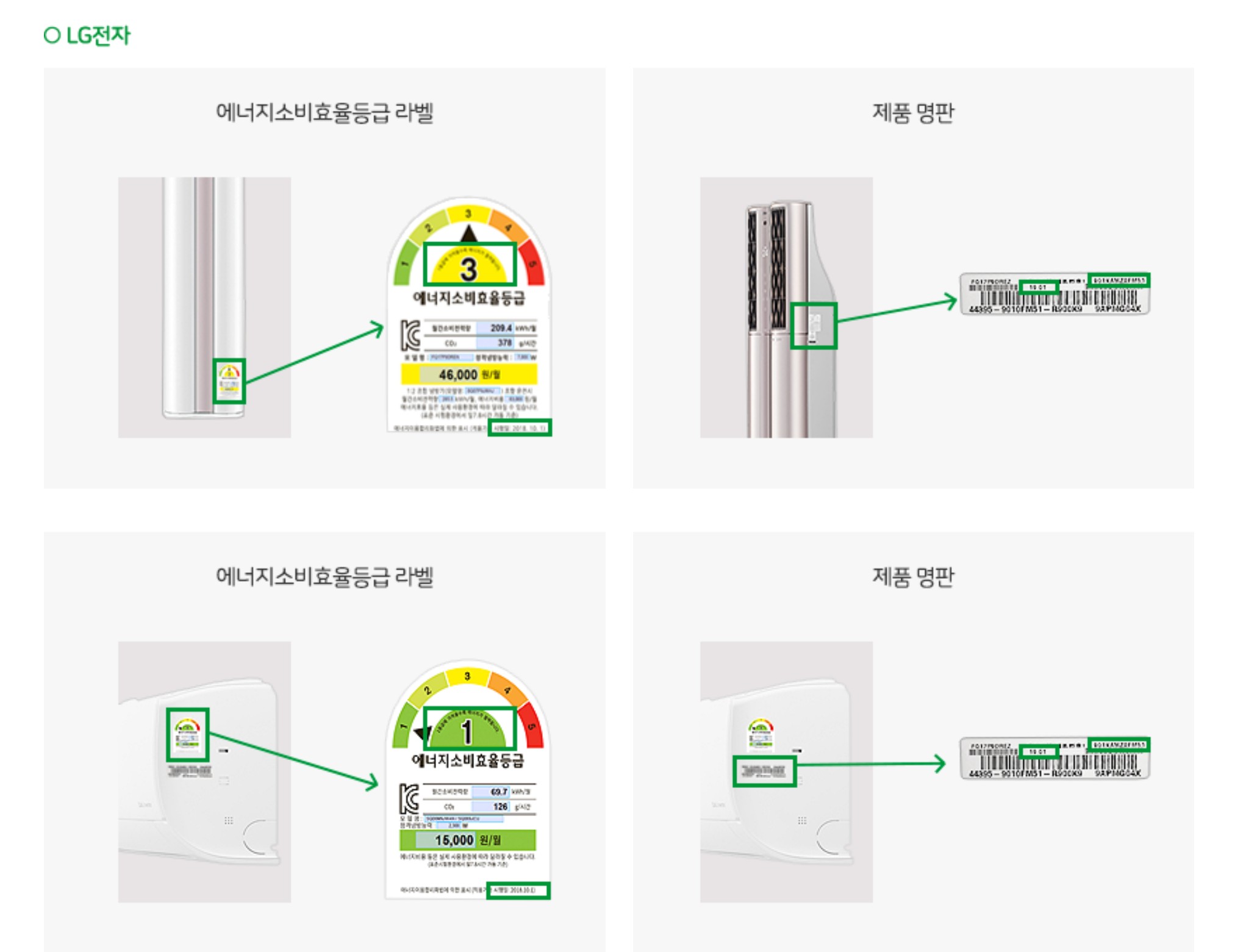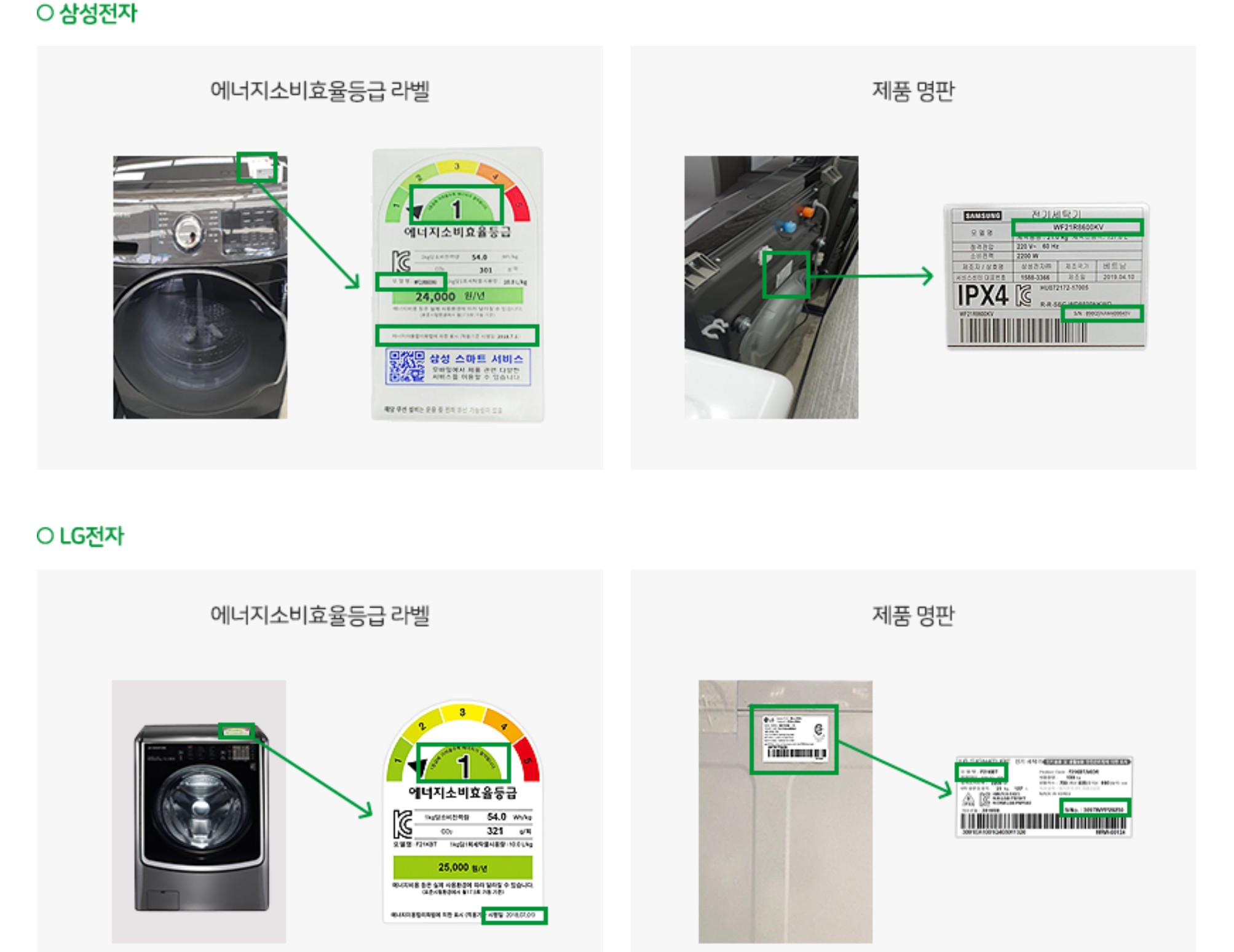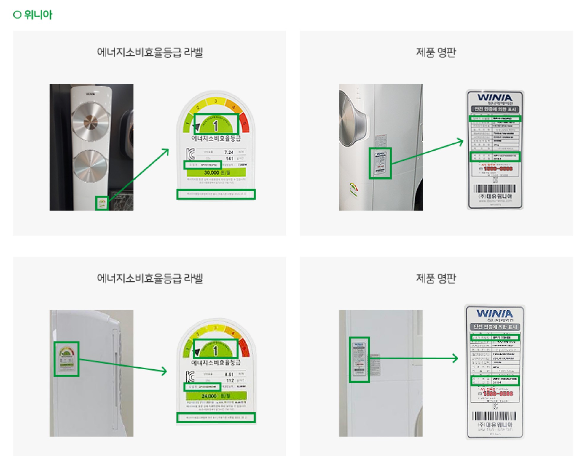 각 제조사별 가전제품 라벨 위치입니다. 클릭하시면 큰 이미지로 볼 수 있으니 참고하세요!