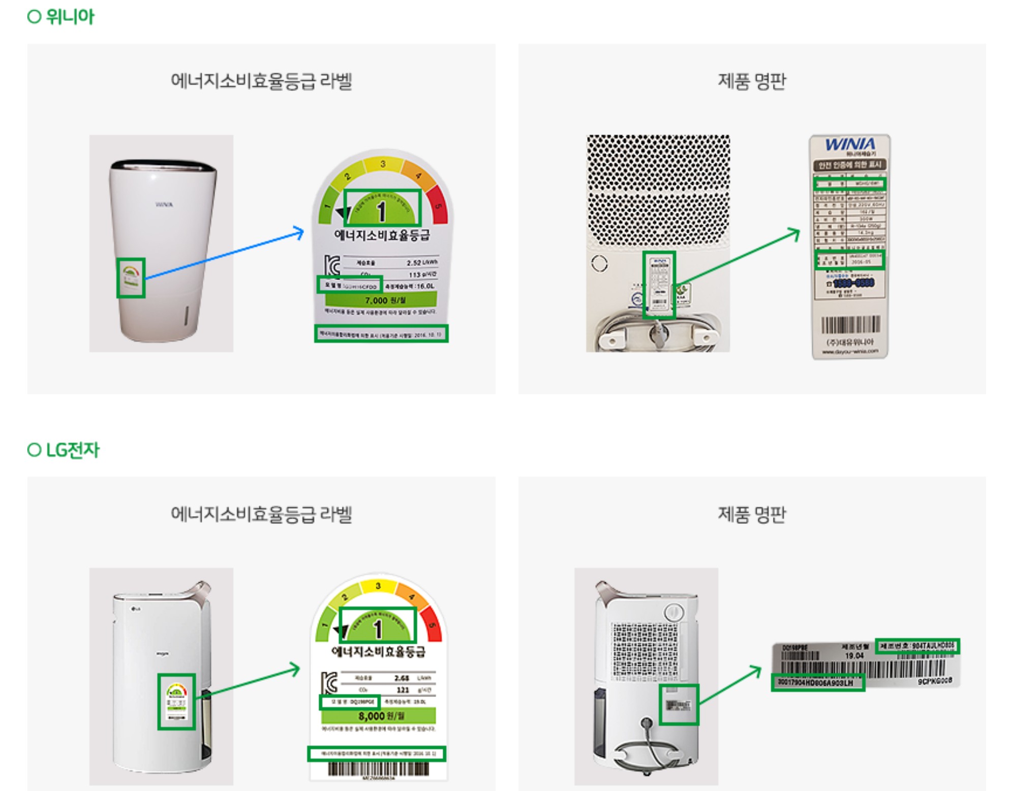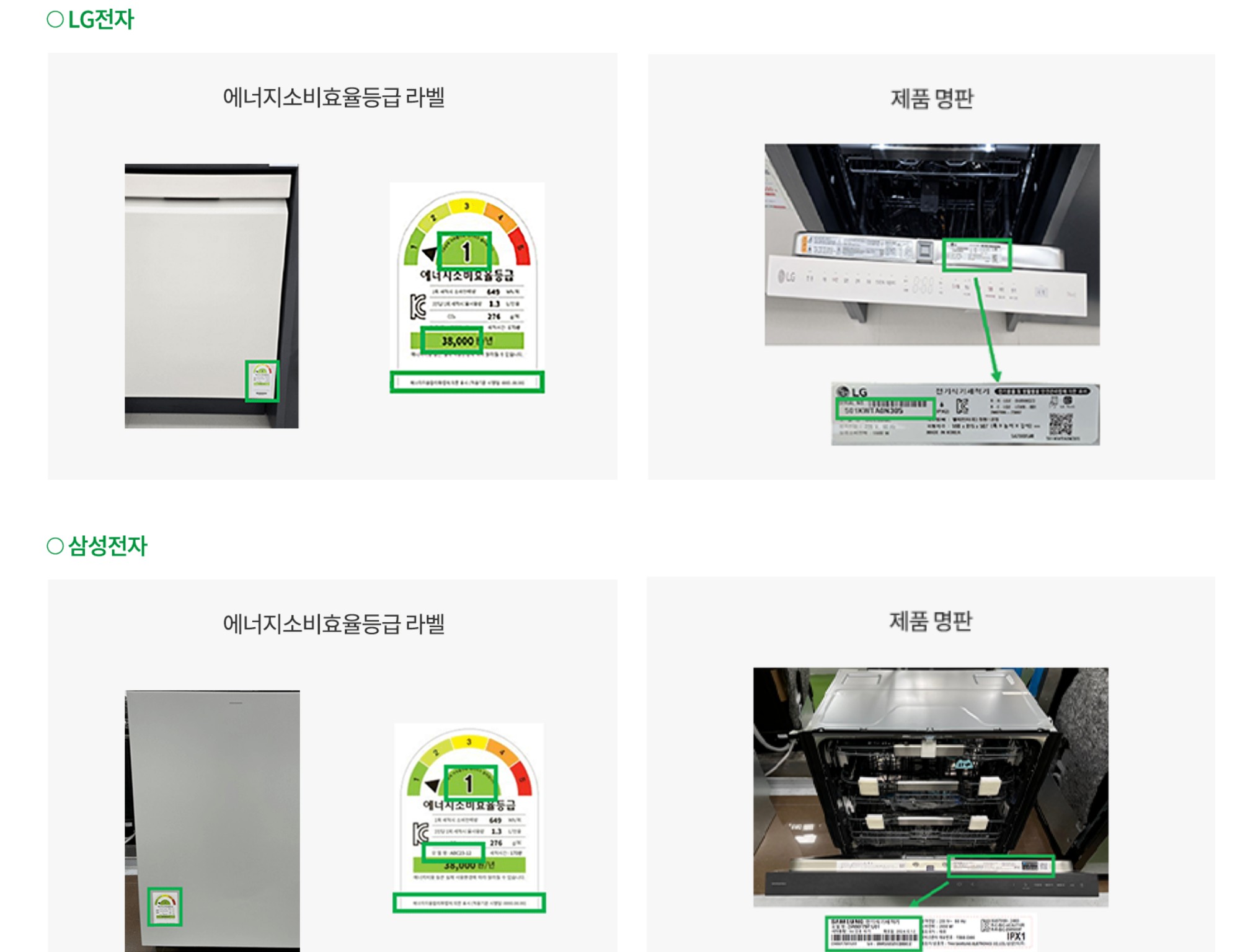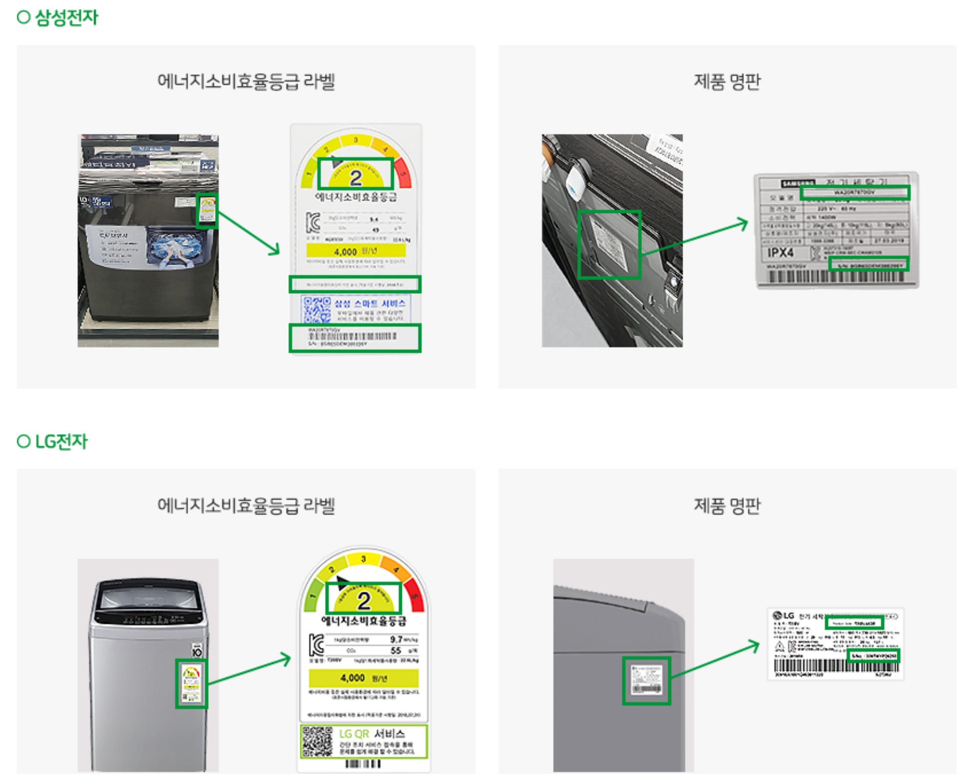 각 제조사별 가전제품 라벨 위치입니다. 클릭하시면 큰 이미지로 볼 수 있으니 참고하세요!