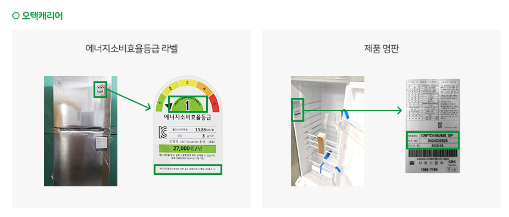 - 제품 라벨 사진 (1등급 등급표시 및 적용 기준일 포함)